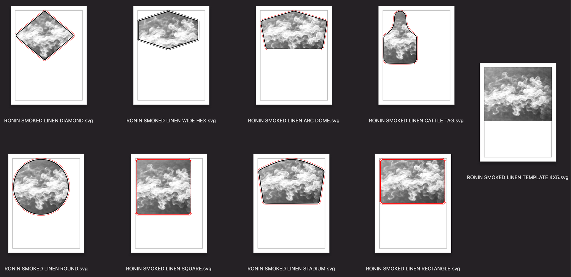 RONIN SMOKED LINEN – 8 Shapes w/ 4x5 Template - DIGITAL FILE
